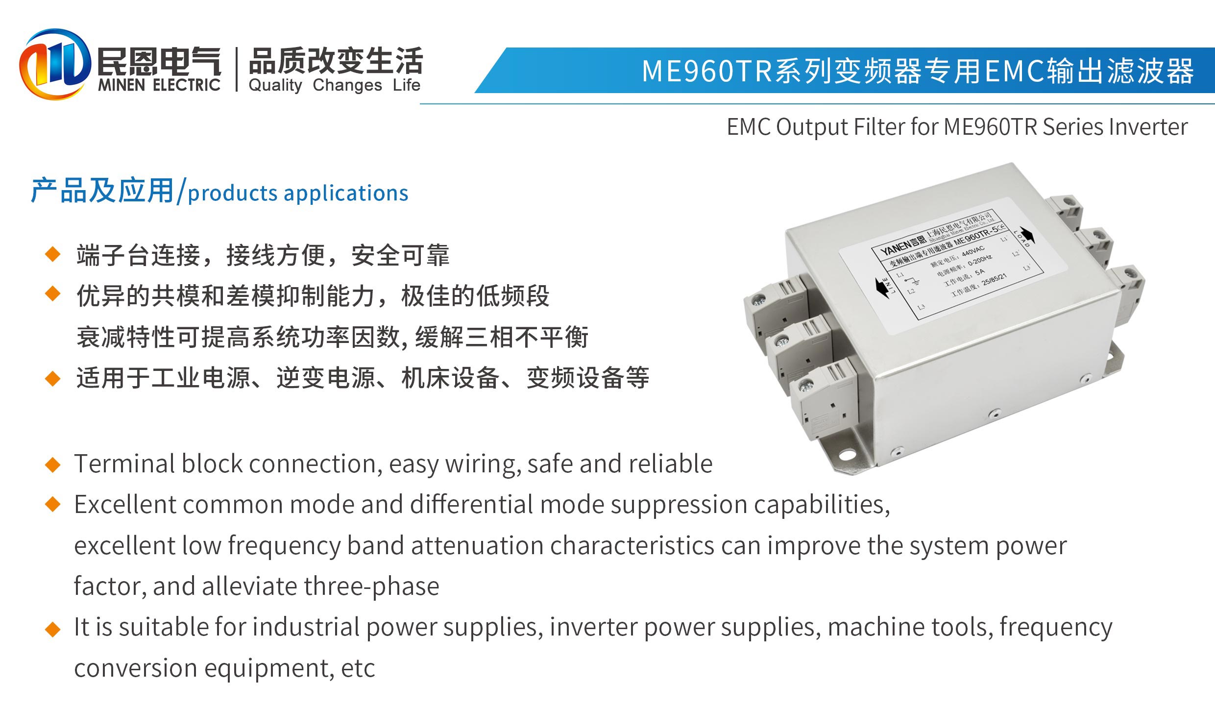 ME960TR系列變頻器端子臺(tái)式輸出EMC濾波器